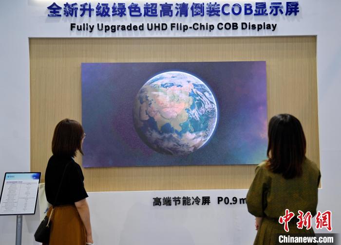 6月18日,2024长春国际光电博览会在长春开幕,博览会覆盖“芯、光、星、车、网”五大领域13个产业方向,全面展现中国最前沿的光电科技,以及实际应用领域等内容。图为最小像素间距0.3mm玻璃基可拼接Micro LED彩色显示器。中新社记者张瑶摄