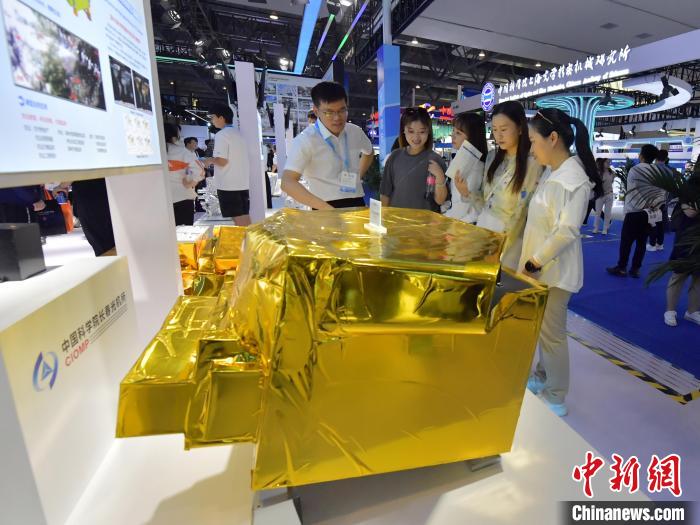 6月18日,2024长春国际光电博览会在长春开幕,博览会覆盖“芯、光、星、车、网”五大领域13个产业方向,全面展现中国最前沿的光电科技,以及实际应用领域等内容。图为参观者在参观长春光机所研发的高分六号卫星宽幅相机。刘栋摄