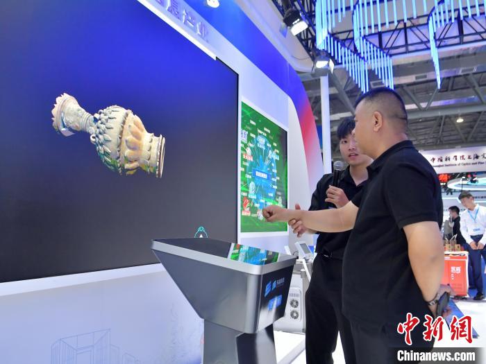 6月18日,2024长春国际光电博览会在长春开幕,博览会覆盖“芯、光、星、车、网”五大领域13个产业方向,全面展现中国最前沿的光电科技,以及实际应用领域等内容。图为参观者在体验远像台灯。中新社记者张瑶摄