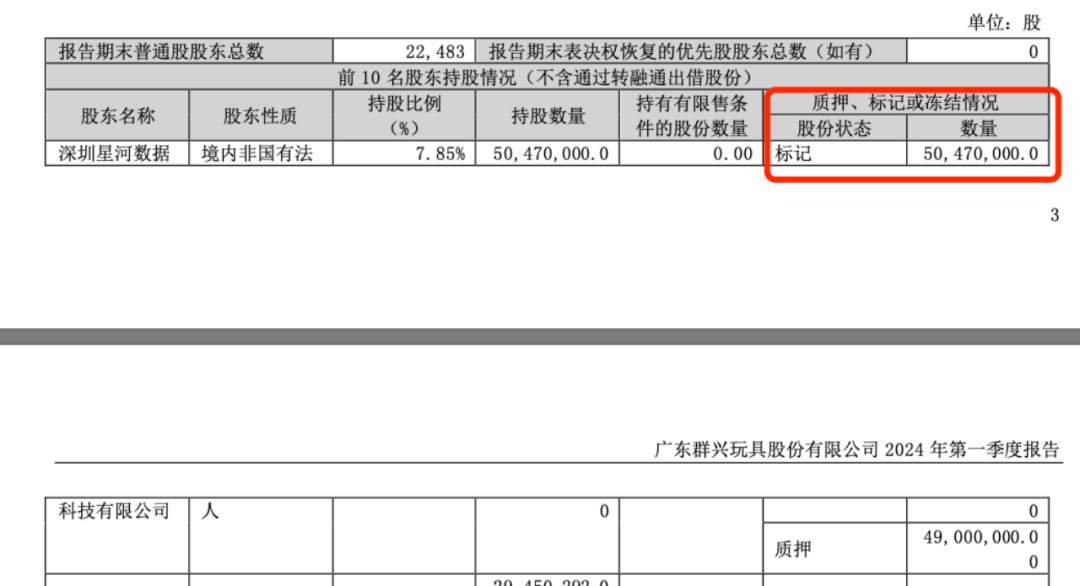 从股权结构上看,深圳星河持有群兴玩具5047万股股票,占比7.85%,为公司第一大股东。王叁寿持有深圳星河66.66%股权,为其实控人。截至今年一季度末,深圳星河所持群兴玩具的股份均处于司法标记状态。同时,因债务纠纷与股权纠纷,王叁寿已成为失信被执行人。