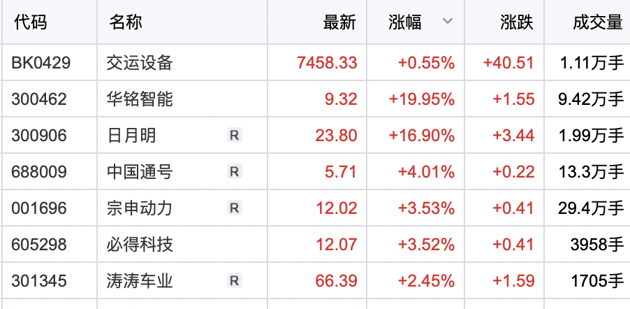上证报中国证券网讯 6月3日早盘,交运设备板块表现活跃。截至9时39分,华铭智能涨停。日月明涨超16%,实盘配资门户中国通号涨逾4%,宗申动力、必得科技等跟涨。